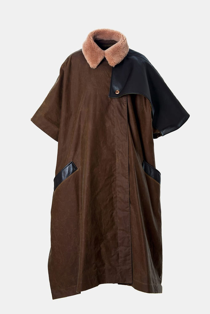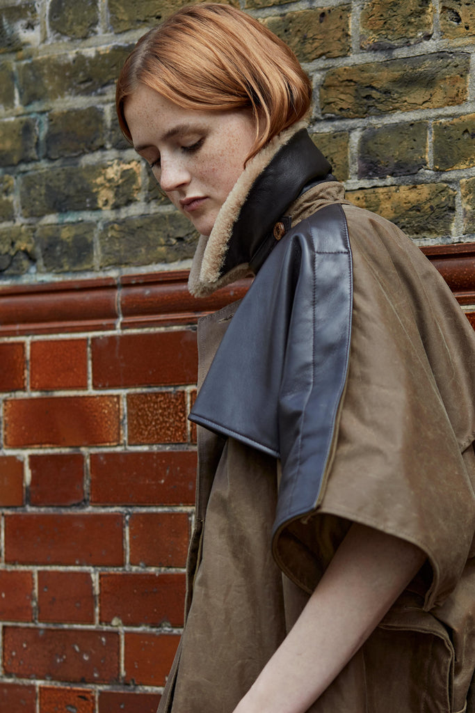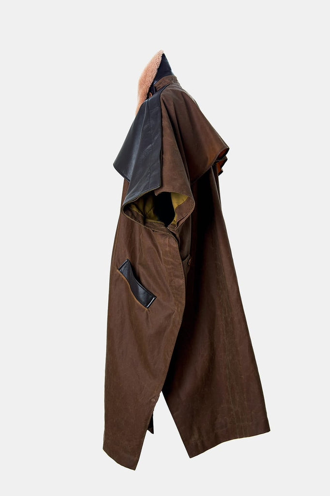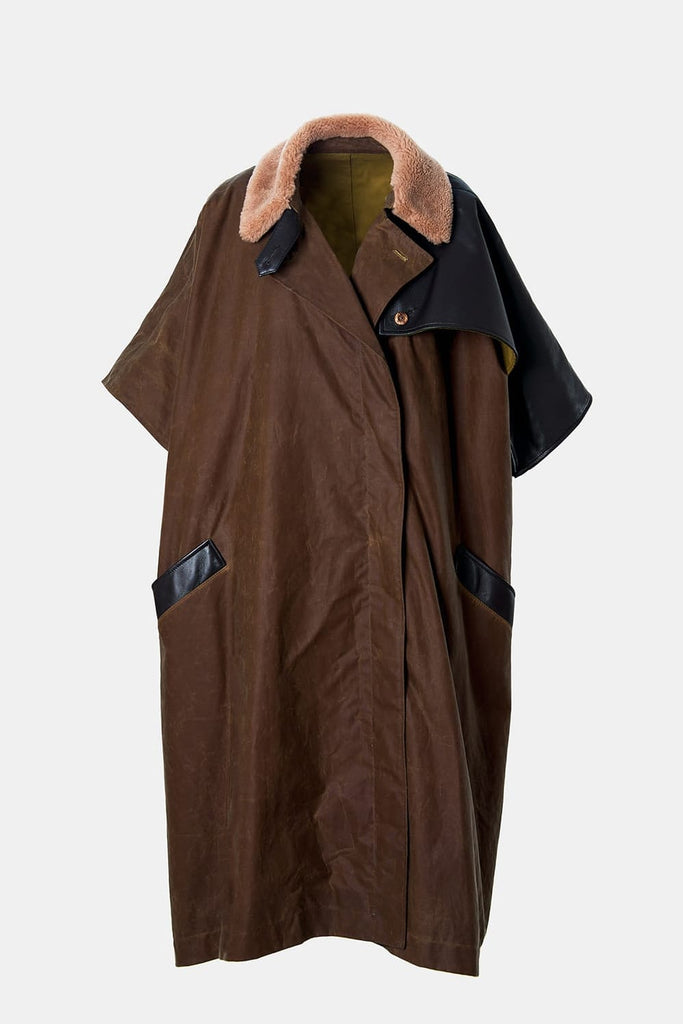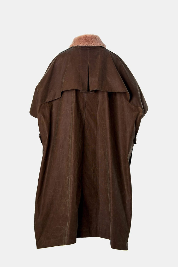 Organic oilskin cut to an exquisite shape - creating volume and sweeping drama.