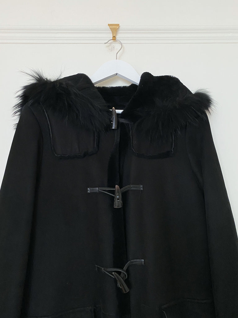 Black Merino Shearling Duffle Coat